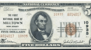 five dolars Natioanl Bank of Milltown